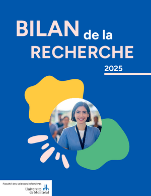 Le rapport annuel de la recherche et de l’international de la Faculté des sciences infirmières est un portrait des activités de développement et de mobilisation de connaissances réalisées pour améliorer les soins et les services prodigués à la population ainsi que la formation infirmière. Nos professeurs et nos étudiants se démarquent par la diversité de leurs recherches en partenariat avec les milieux de soins, leurs initiatives interdisciplinaires et leur participation à des projets internationaux. Nous travaillons ensemble à la poursuite d’une mission d’excellence afin de fournir des soins et des services de santé qui s’appuient sur des résultats de recherche.